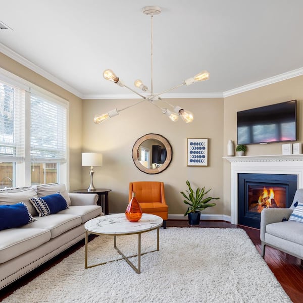 6-Light Antique Gray Adjustable Linear Sputnik Chandelier Lighting for Kitchen Island