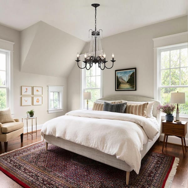 6-Light Black Candle Design Crystal Linear Chandelier Lighting for Kitchen Island with no bulbs included