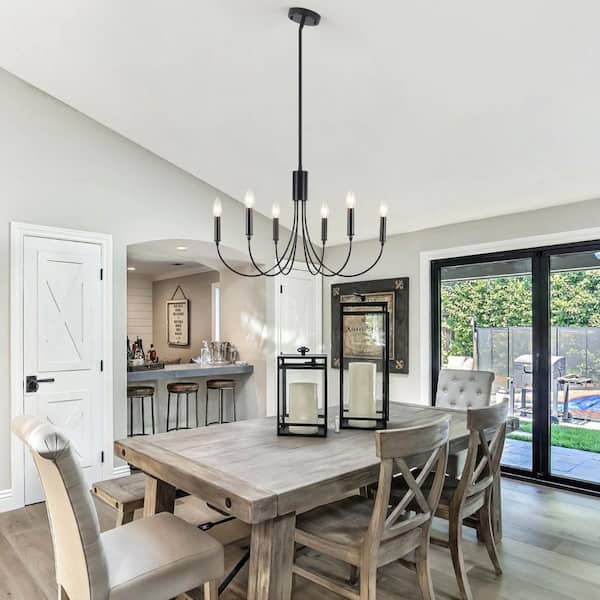 6-Light Black Candlestick Hanging Linear Chandelier Lighting for Dining Room Kitchen Island with No Bulbs Included