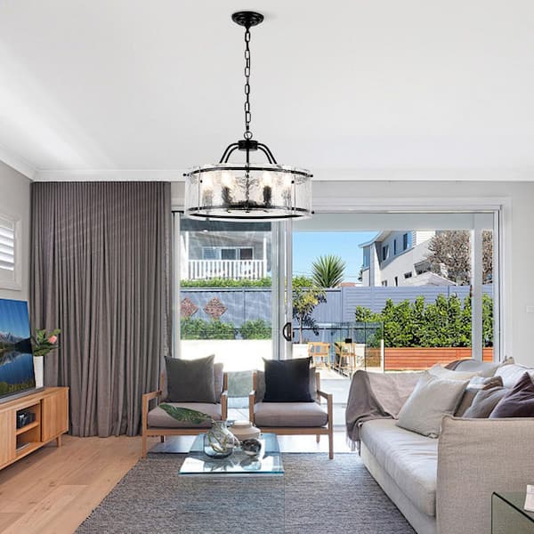 • Sleek black finish with elegant glass shades