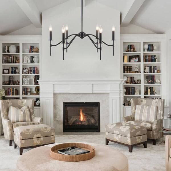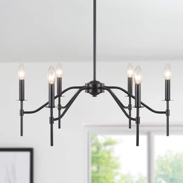 6-Light Black Hanging Linear Candlestick Chandelier Lighting Fixture for Kitchen Island