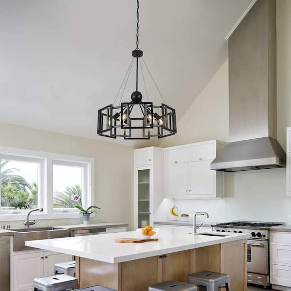 6-Light Black Modern Hanging Linear Chandelier Lighting Fixture for Kitchen Island