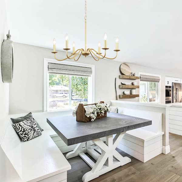 6-Light Classic Golden Candle Style Chandelier for Kitchen Island Dining Room with No Bulbs Included