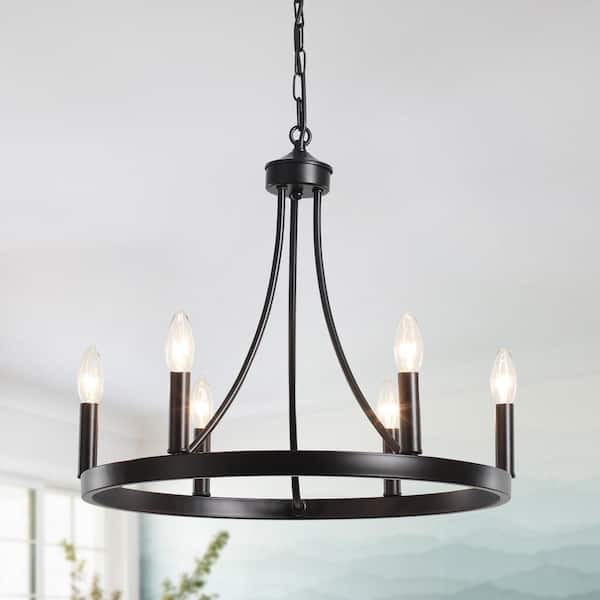 6-Light Farmhouse Black Candlestick Circle Wagon Wheel Chandelier Lighting for Kitchen Island