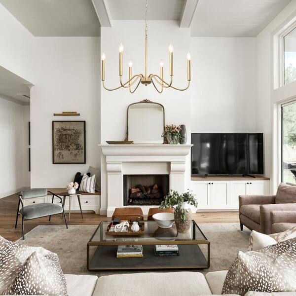 6-Light Gold Candle Design Hanging Linear Chandelier Lighting for Kitchen Island
