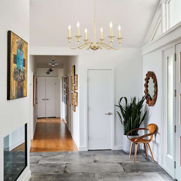 6-Light Gold Candlestick Hanging Ceiling Light Fixture Linear Chandelier Lighting for Kitchen Island