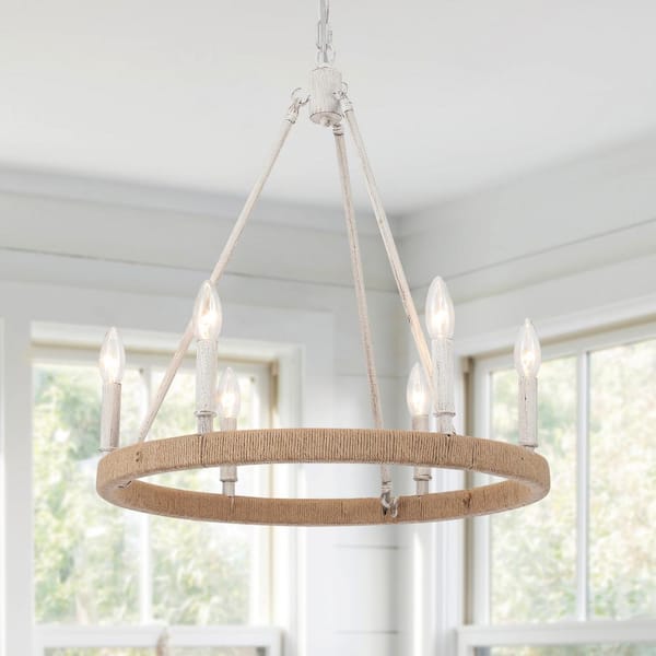 6-Light Grey Candle Design Circle Hanging Wagon Wheel Chandelier Island Chandelier Lighting for Dining Room