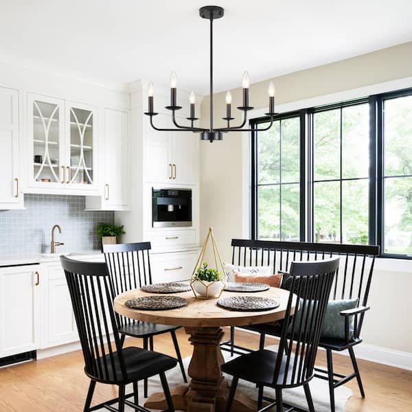 6-Light Rustic Black Candlestick Hanging Island Linear Chandelier Pedant Light for Kitchen Island