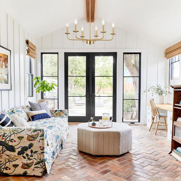 6-Light Rustic Copper Candlestick Hanging Island Linear Chandelier Pedant Light for Kitchen Island