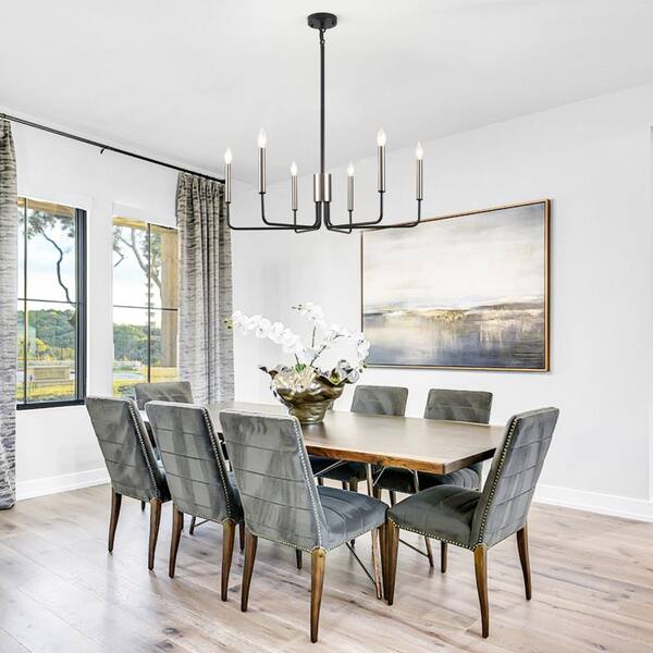 6-Light Simplicity Matte Black/Sliver Nickel Candle Style Chandelier for Foyer Dining Room with No Bulbs Included