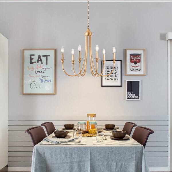 6-Light Spray Gold Mid-Century Candlestick Hanging Linear Chandelier Lighting for Kitchen Island with no bulbs included