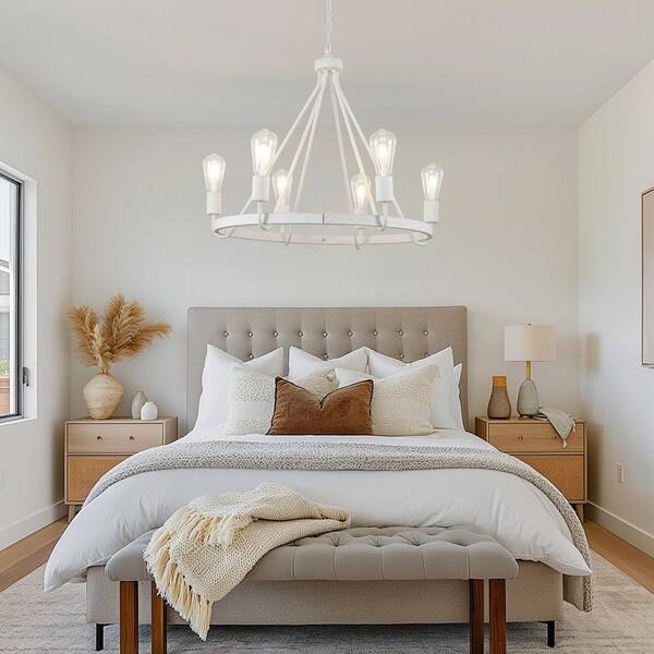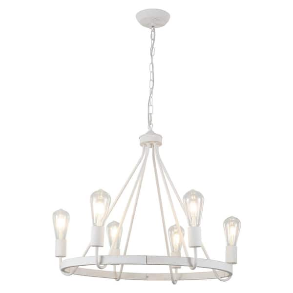 6-Light Vintage White Flower Basket Design Wagon Wheel Chandelier for Bedroom Kitchen Island with No Bulbs Included