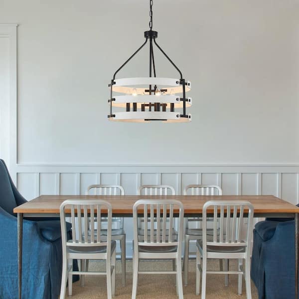 6-Light White Rustic Hanging Linear Candlestick Island Chandelier Lighting for Kitchen Dining Room