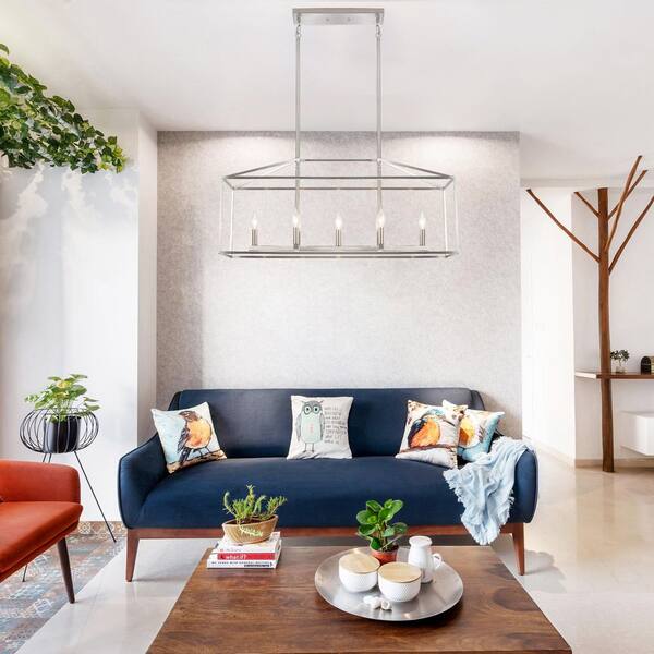 7-Light Farmhouse Nickel Hanging Linear Island Chandelier Lighting for Kitchen Island