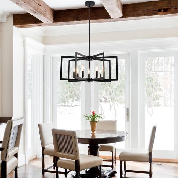 7-Light Farmhouse Rectangular Black Hanging Linear Island Chandelier Lighting for Kitchen Island