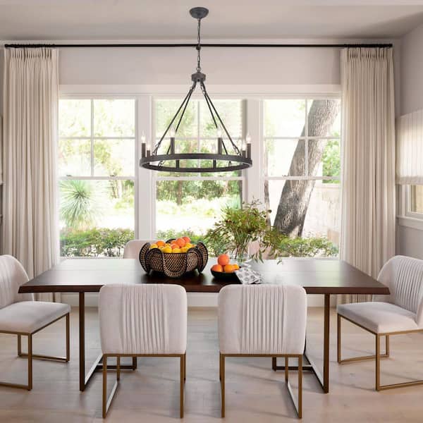 8-Light Antique Black Circle Candle Design Linear Chandelier Lighting Wagon Wheel Chandelier for Kitchen Island