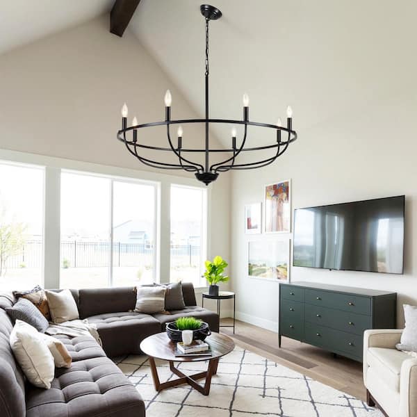 8-Light Black Modern Hanging Candlestick Linear Chandelier Lighting Fixture for Kitchen Island