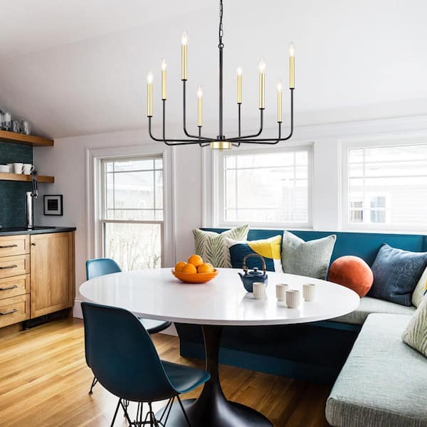8-Light Black and Gold Candlestick Hanging Linear Chandelier Lighting Ceiling Light for Kitchen Island