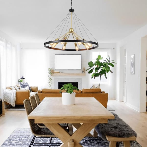 8-Light Black and Gold Spray Circle Wagon Wheel Chandelier Sputnik Chandelier for Dining Room with No Bulbs Included