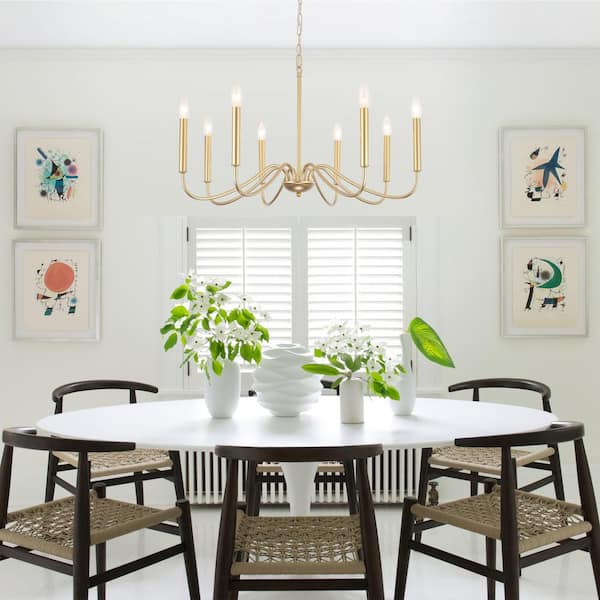 8-Light Gold Candle Design Hanging Linear Chandelier Lighting Ceiling Light for Kitchen Island