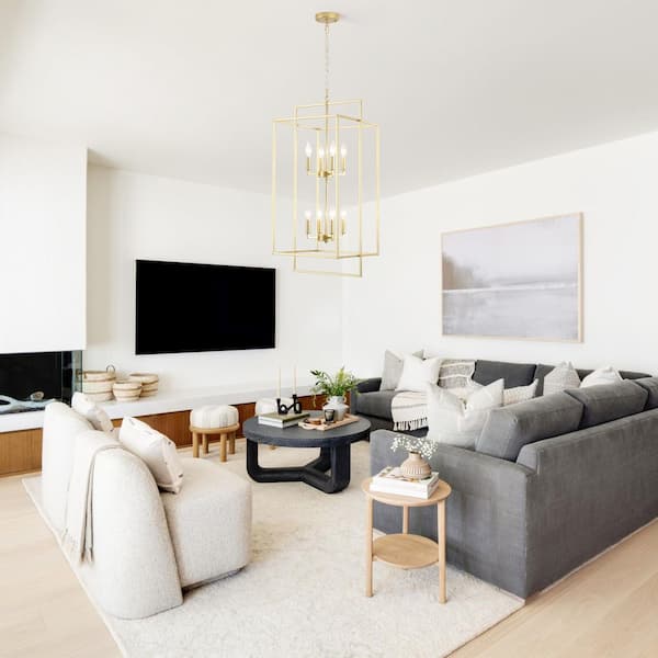 8-Light Gold Candlestick Hanging Linear Chandelier Lighting Cage Ceiling Light for Kitchen Island
