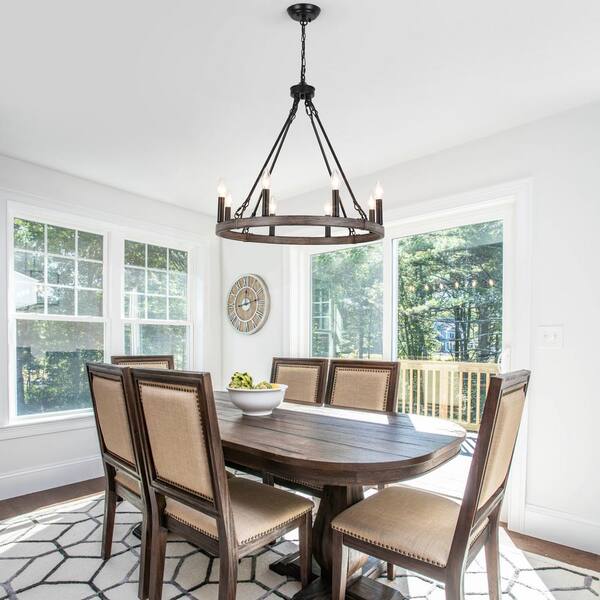 8-Light Natural Circle Candle Design Linear Chandelier Lighting Wagon Wheel Chandelier for Kitchen Island