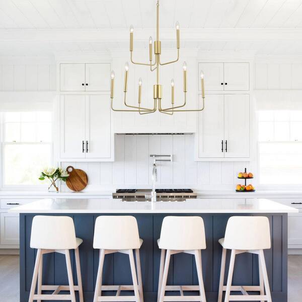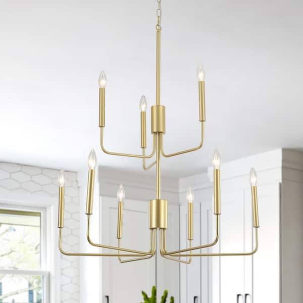 9-Light Gold Traditional Hanging 2-Tier Linear Candlestick Chandelier Lighting for Kitchen Island