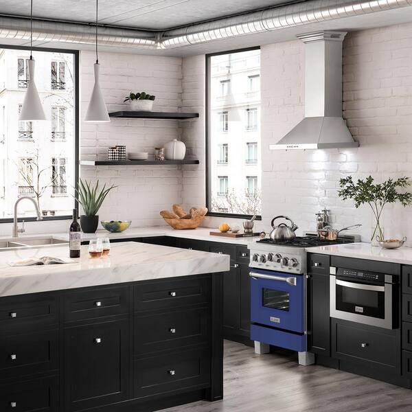 24 in. 4 Burner Single Oven Gas Range with Blue Matte Door in Fingerprint Resistant Stainless Steel