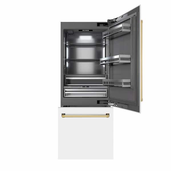 30 in. 16.1 cu. ft. Built-In Bottom Freezer Refrigerator in Matte White with Graphite Gray Interior and Gold Accents