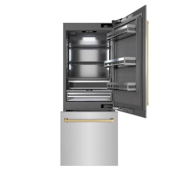 30 in. 16.1 cu. ft. Built-In Bottom Freezer Refrigerator in Stainless Steel with Graphite Gray Interior & Bronze Accents