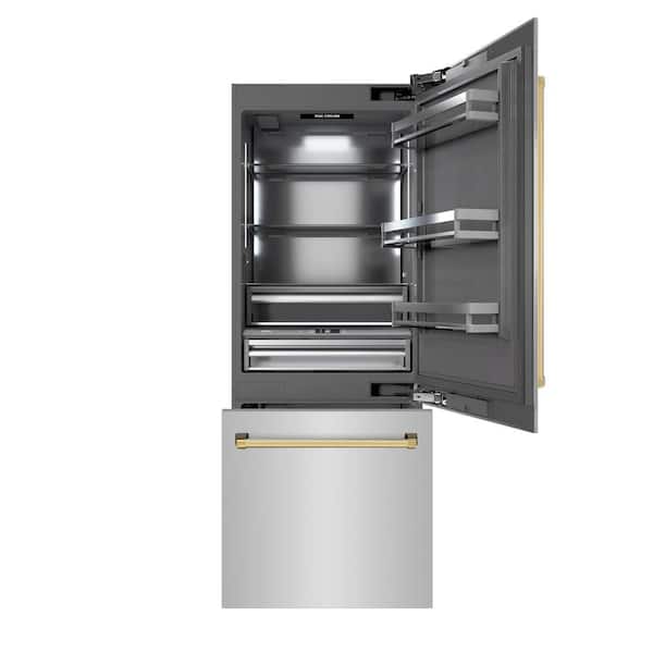 30 in. 16.1 cu. ft. Built-in Bottom Freezer Refrigerator in Stainless Steel with Graphite Gray Interior and Gold Accents