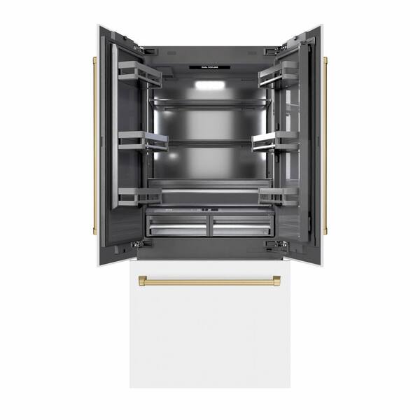 36 in. 19.6 cu. ft. Built-in Bottom Freezer Refrigerator in Matte White with Graphite Gray Interior and Bronze Accents