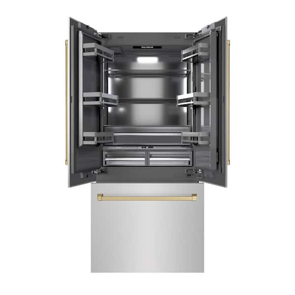 36 in. 19.6 cu. ft. Built-in Bottom Freezer Refrigerator in Stainless Steel with Graphite Gray Interior & Bronze Accents