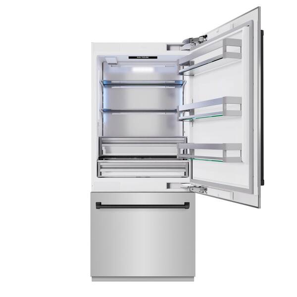 36 in. 19.8 cu. ft. Built-in Bottom Freezer Refrigerator with Water Dispenser and Ice Maker with Matte Black Accents
