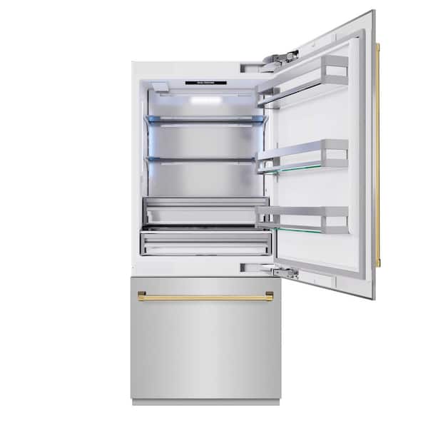 36 in. 19.8 cu. ft. Built-in Bottom Freezer Refrigerator with Water Dispenser and Ice Maker with Polished Gold Accents