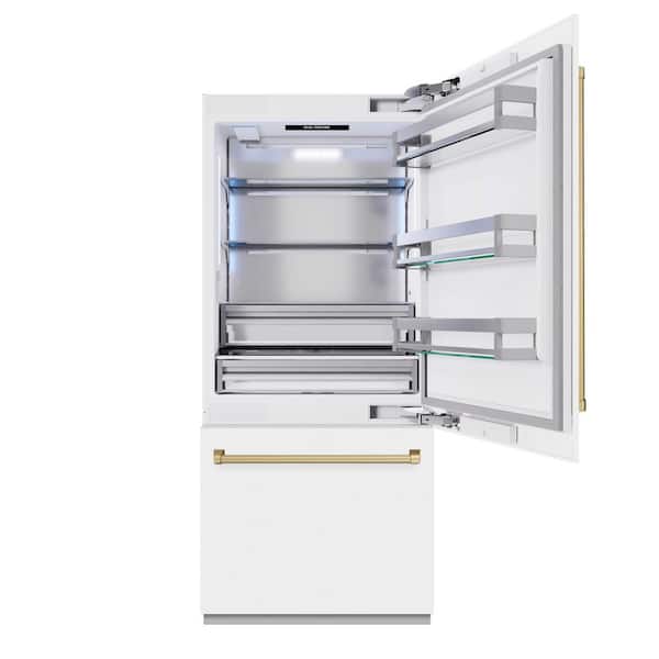 36 in. 19.8 cu. ft. Built-in Bottom Freezer Refrigerator with Water Dispenser in Matte White w/ Champagne Bronze Accents