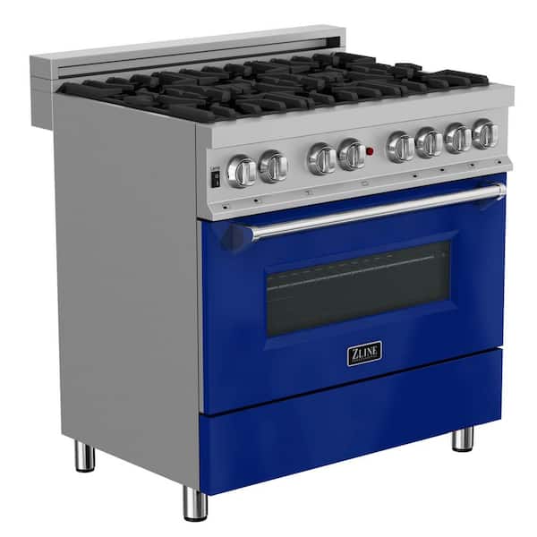 36 in. 6 Burner Dual Fuel Range with Blue Gloss Door in Fingerprint Resistant Stainless Steel