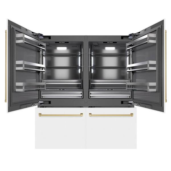 72 in. 39.6 cu. ft. Built-in Bottom Freezer Refrigerator in Matte White with Graphite Gray Interior and Bronze Accents