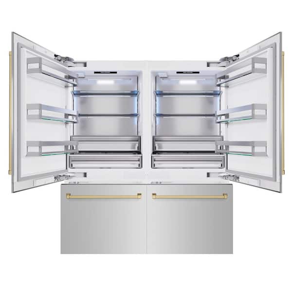 72 in. 39.6 cu. ft. Built-in Bottom Freezer Refrigerator w/ Water Dispensers in Stainless Steel and Bronze Accents