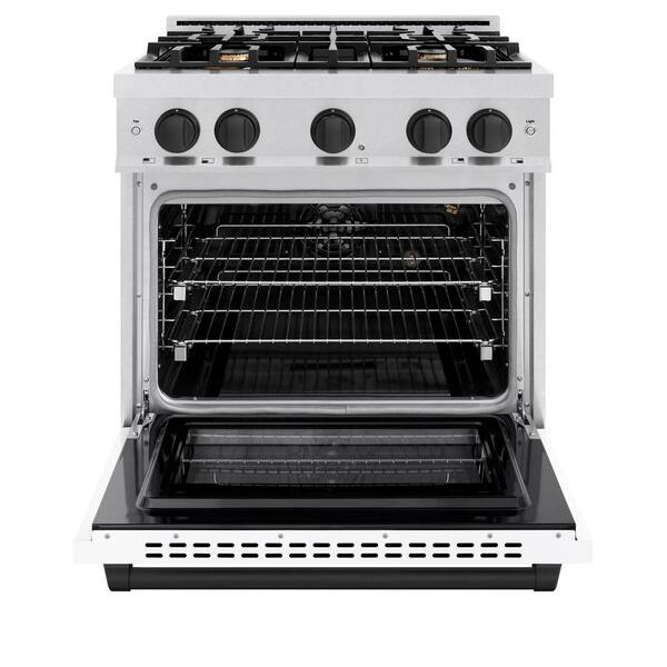 Autograph 30 in. Select Gas Range with 4 Burners and Convection Gas Oven in Satin Steel with White and Black Accents