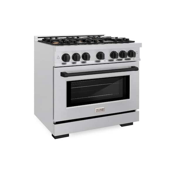 Autograph 36 in. Select Gas Range with 6 Burners and Convection Gas Oven in Satin Steel and Matte Black Accents