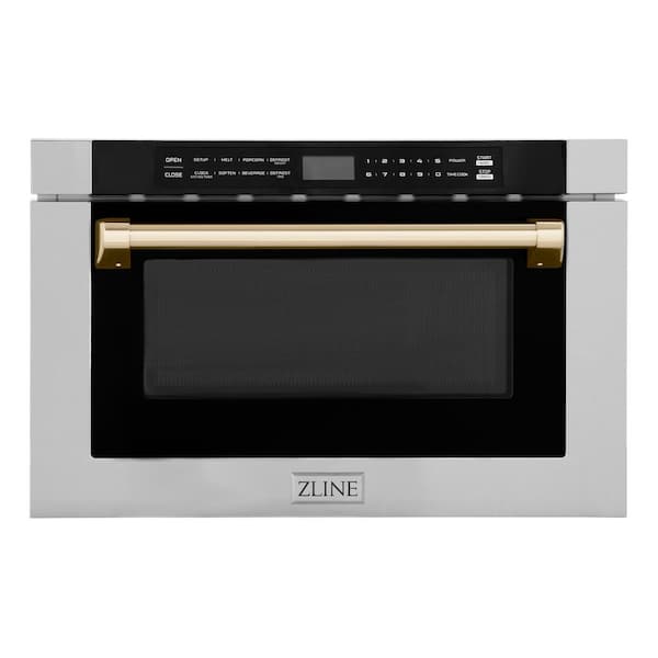Autograph Edition 24 in. 1000-Watt Built-In Microwave Drawer in Stainless Steel & Traditional Polished Gold Handle