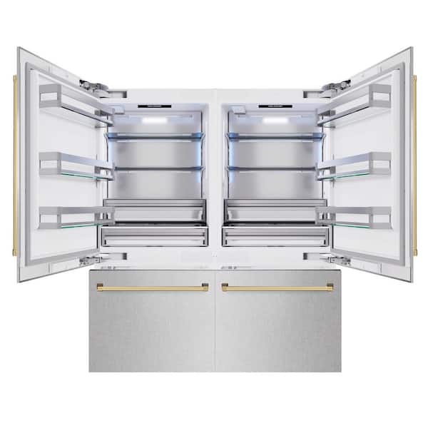 Autograph Edition 72 in. Built-In Refrigerator w/ Water Dispensers in Satin Steel and Polished Gold Accents