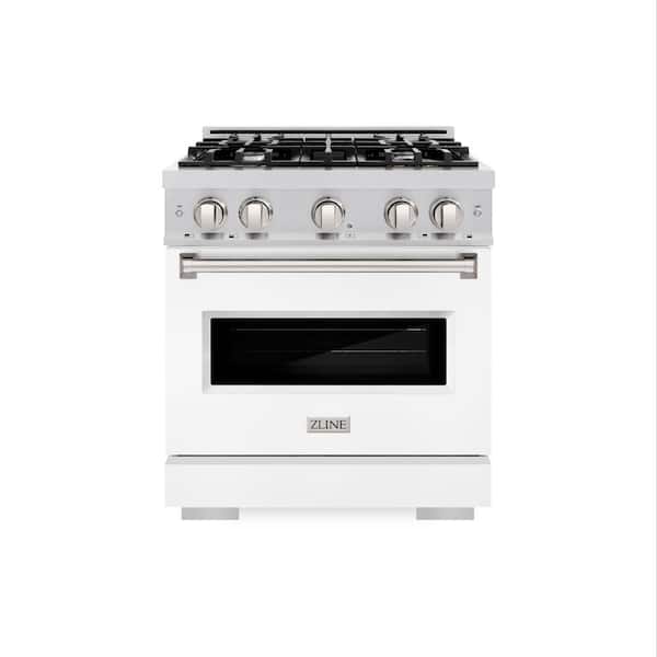 Classic 30 in. 4-Burner Gas Range with Gas Convection Oven in Stainless Steel and Matte White Door