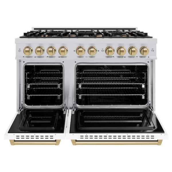 Classic 48 in. 8-Burner Dual Fuel Range with Double Oven in Stainless Steel, Matte White, and Champagne Bronze