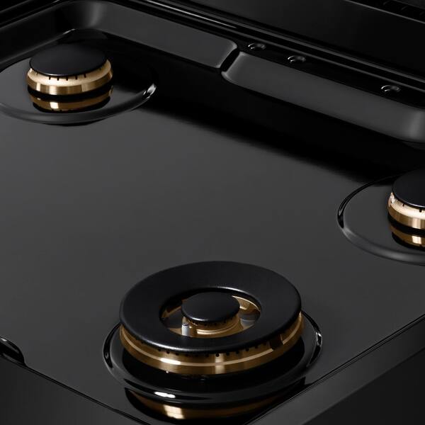Paramount 30 in. 4-Burner Porcelain Cooktop with Brass Burners in Black Stainless Steel