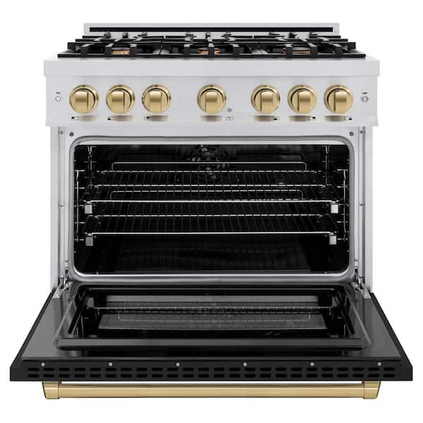 Select 36 in. 6-Burner Dual Fuel Range with Convection Oven in Stainless Steel, Matte Black and Champagne Bronze