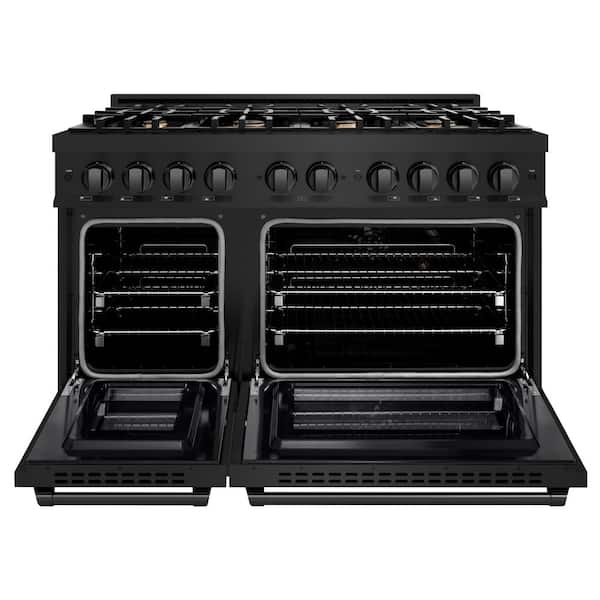 Select 48 in. 8-Burner Dual Fuel Range with Double Oven and Brass Burners in Black Stainless Steel