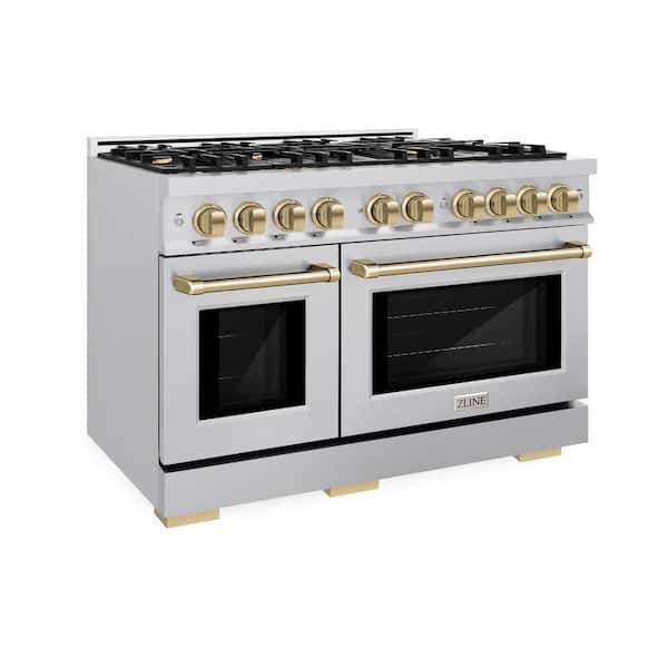 Select 48 in. 8-Burner Dual Fuel Range with Double Oven in Stainless Steel and Champagne Bronze