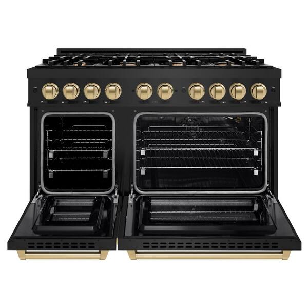 Select 48 in. 8-Burner Gas Range with Double Oven in Black Stainless Steel and Champagne Bronze